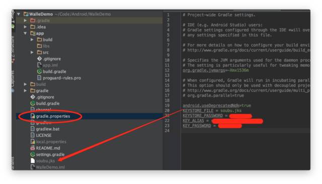 汗,因为我的Demo中并没有上传我的jks文件,你可以添加自己的jks文件,然后在gradle.properties里面配置好签名文件的密码即可