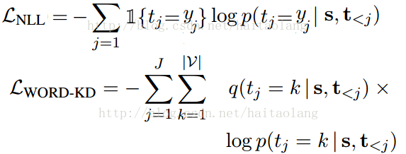 是大型网络的概率分布。(以上资料参考CSDN博客Sequence-Level Knowledge Distillation)