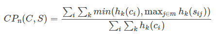 2.METEOR:METEOR测度基于单精度的加权调和平均数和单字召回率,其目的是解决一些BLEU标准中固有的缺陷,METEOR也包括其他指标没有发现一些其他功能,如同义词匹配等。计算METEOR需要预先给定一组校准(alignment)m,而这一校准基于WordNet的同义词库,通过最小化对应语句中连续有序的块(chunks)ch来得出 则METEOR计算为对应最佳候选译文和参考译文之间的准确率和召回率的调和平均: