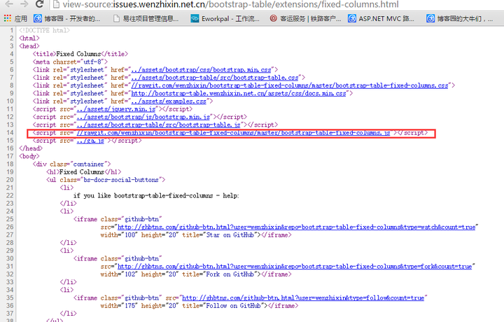 还好有万能的开源,查看该页面源代码发现可以找到冻结列这个js的源码。