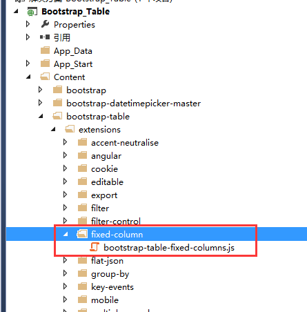 我们在bootstrap-table下面的extensions文件夹下面新增加一个文件夹fixed-column