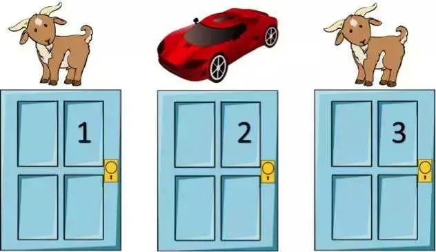 主持人会向你展示三扇关着的门,其中一扇门之后有一辆车,其它门后则有一些无价值的东西。你可以选择一扇门。然后,主持人会打开剩下的两扇门中没有车的一扇。现在,你可以选择是否更换选择的门:坚持你之前选择的那扇门,还是选择主持人剩下的那扇关闭的门。你会更换吗?