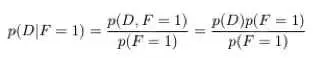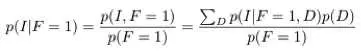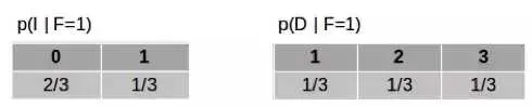 现在,让我们假设我们已经选择了一扇门。也就是说现在已经观察到 F,假设 F=1。那么给定 F 时,I 和 D 的条件概率是多少?