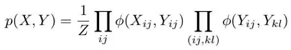 现在,我们需要根据我们的图结构来定义我们的联合分布 P(X,Y)。让我们假设 P(X,Y) 由两类因子组成——ϕ(X_ij, Y_ij) 和 ϕ(Y_ij,Y_kl),对应于图中的两类边。接下来,我们按如下方式定义这些因子: