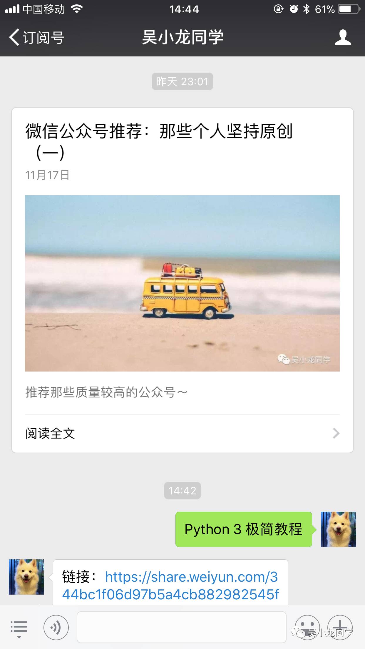 经过一个多月分享,终于将该系列博客分享完,不容易啊,我的小密圈优先分享,之后在公众号和博客分享,虽然该系列教程早在国庆节写好了,属于初稿,当我准备公开分享小密圈时,事前又搜索了相关知识学习补充,做到了极简但该有的知识点不少,适合有点编程基础的快速入门,通过该系列文章学习,我相信您能独立完成接口的编写,写写小东西,之后就得靠自己不断精进了,当然 Python 这块我也会持续关注下去。现在我把这份教程做成了 PDF ,供大家下载,公众号聊天回复「Python 3 极简教程」获取。