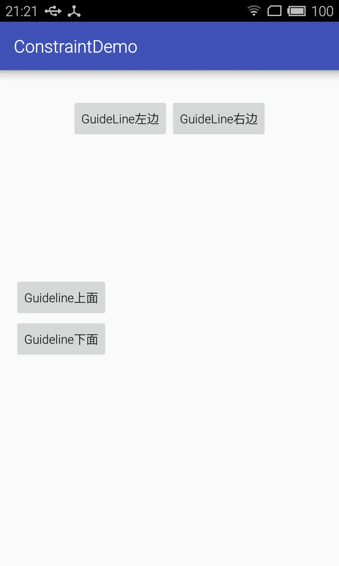 发现Guideline是一个不可见的view,那么我们可以布局时放置一个不可见的view来作为Guideline的替代品,实现一些特殊布局要求。如布局重叠: