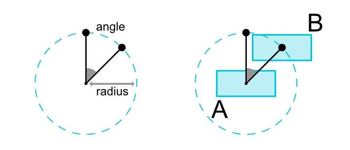 可以相对另一个控件,以角度和距离定义当前控件的位置,即提供了在圆上定义控件位置的能力。如图所示: