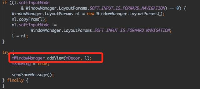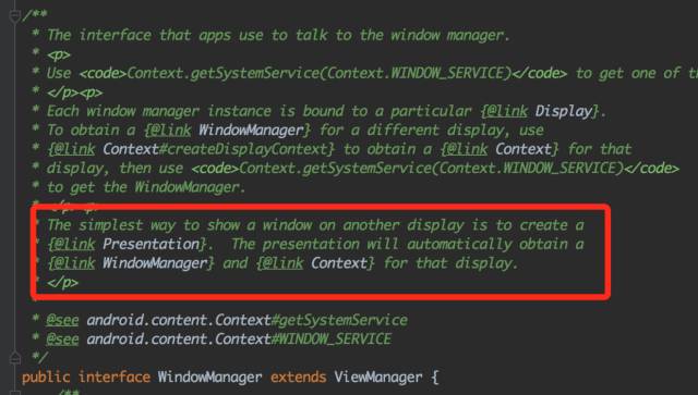 因为电脑屏幕大小受限,就截了两个图。mWindowManager.addView,看到这个方法,可以猜想到WindowManager是个啥玩意了。