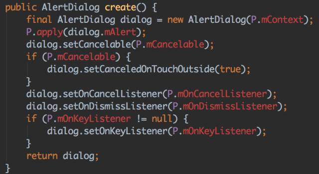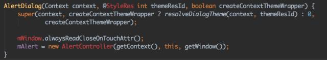 new 了一个 AlertDialog,那么跟踪它的构造方法看看: