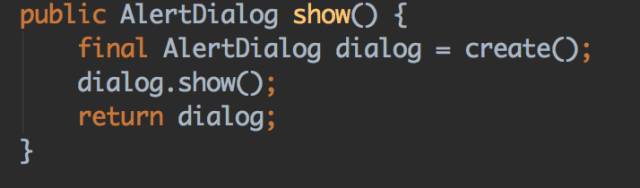 我们省去所有的Dialog build的方法。直接从AlertDialog.show()方法开始: