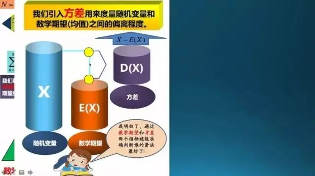 方差的形象理解,就是期望对每一个值之间的差别,取平方、求和取近似均值(除 N-1)。