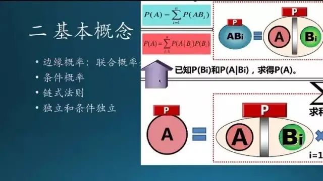 这是概率里面的几个重要概率。条件概率和全概率刚才已经说了,贝叶斯是基于这两个基础上的。