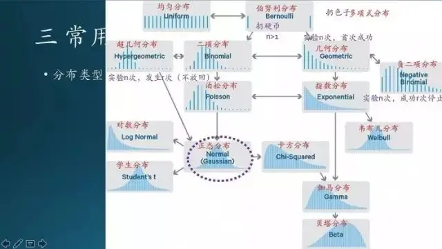 这是我单独整理一张图,几种概率分布之间的关系;它们之间的变化是有规律的。