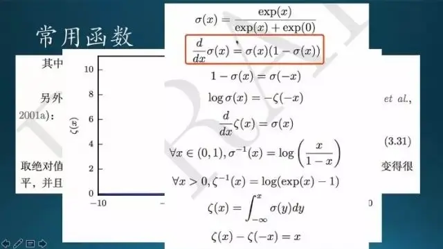 这是一些概率函数的基本性质。sigmoid 求导非常方便,还有其他一些特性。softplus 也有一些很好的性质,(x)-(-x) 起来就等于 x,挺简单。