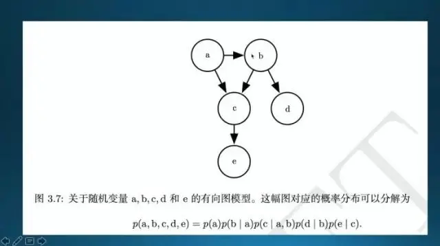 由条件概率引申出来的贝叶斯规则。像这个 a、b、c 的联合分布可以表示成这样,然后它可以对应一个图,概率图。像这样。