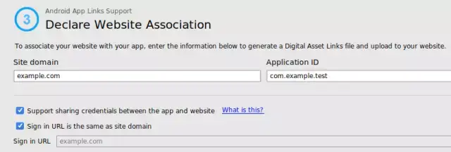 Android Studio 3.0 中 App Links Assistant 能够帮开发者自动生成上述所有信息。打开 DAL 生成器工具(工具 -> App Links Assistant -> 打开数字资产链接文件生成器),确保启用名为 “支持 App 和网站之间共享认证信息” 的新复选框。
