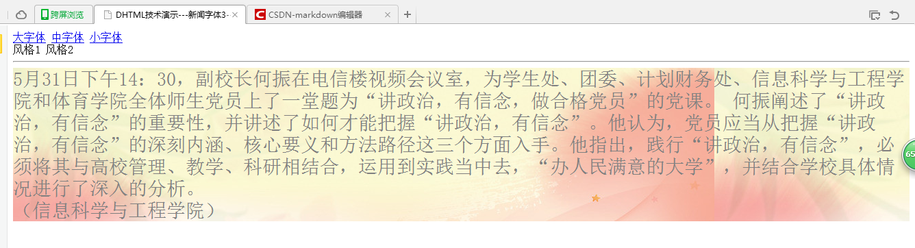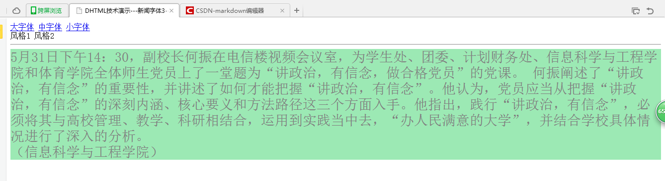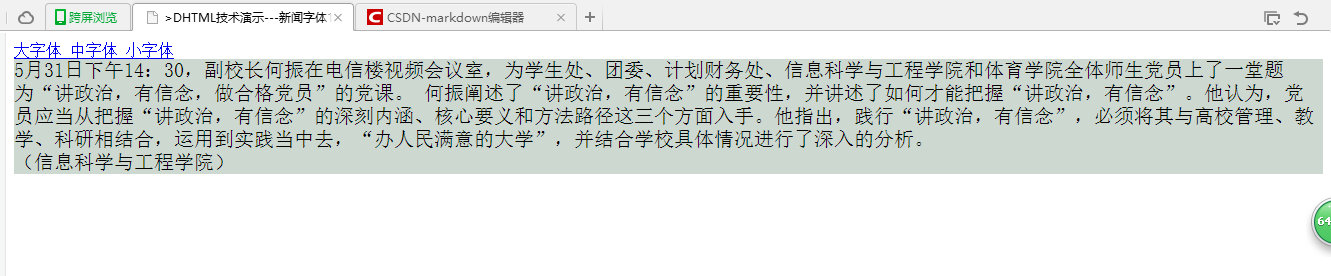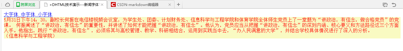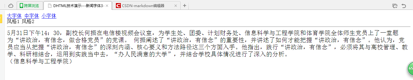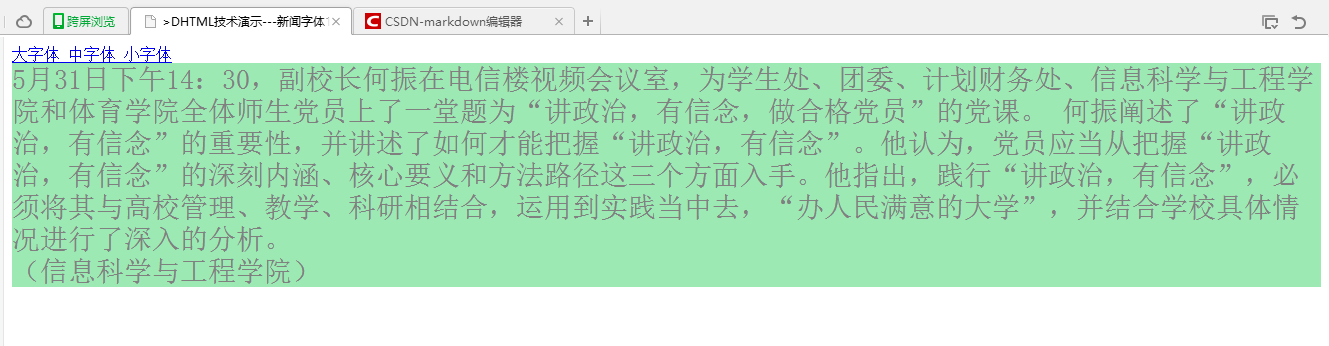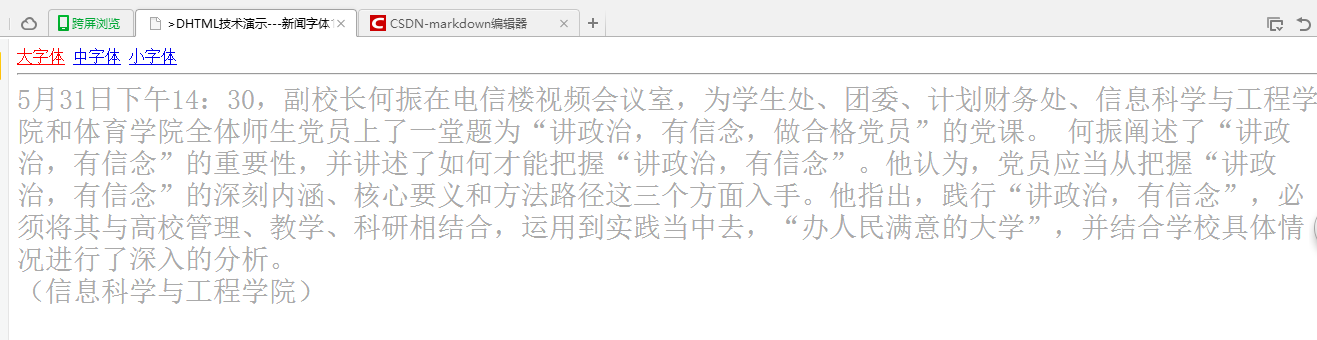 <title>>DHTML技术演示---新闻字体1</title>