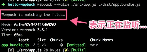 $ webpack --watch ./src/app.js ./dist/app.bundle.js输出效果: