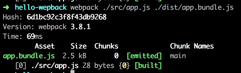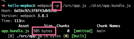 $ webpack -p ./src/app.js ./dist/app.bundle.js输出如下: