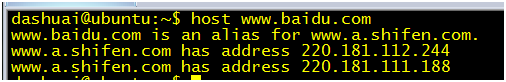 比如,使用host命令进行DNS查询