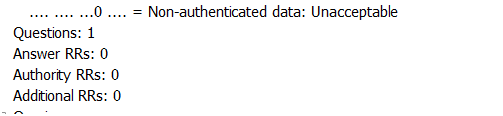 AA(authoritative answer)1位,如果响应数据报设定,说明响应是由域内权限域名服务器发出