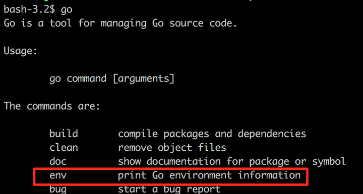 bash-3.2$ go env