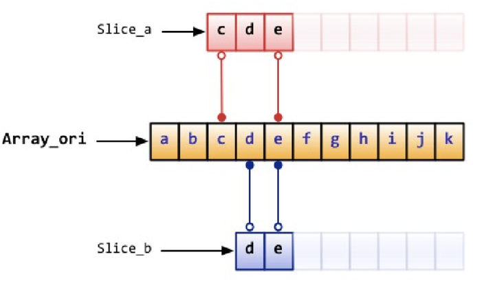 1、总的来说,如下图,可以从一个array声明slice,其实就是指针指向。