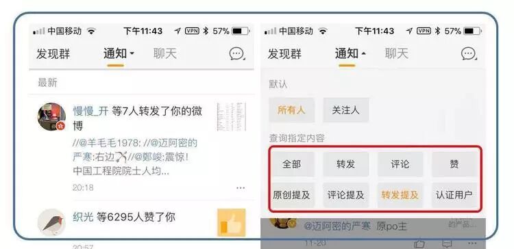 微博消息箱那些复杂的筛选条件显然是为大