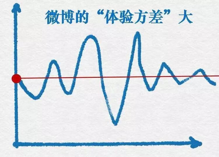同样的道理,微博也能找出一个典型用户的体验均值以及其他用户的「体验方差」,很显然,和微信相比,微博的「体验方差」要大的多,微博的典型用户可能是:一周登录 3 次,每次去瞄一下几个明星,看看热门和热搜,转发两条微博,但和这一典型用户习惯相差十万八千里的用户实在太多了!