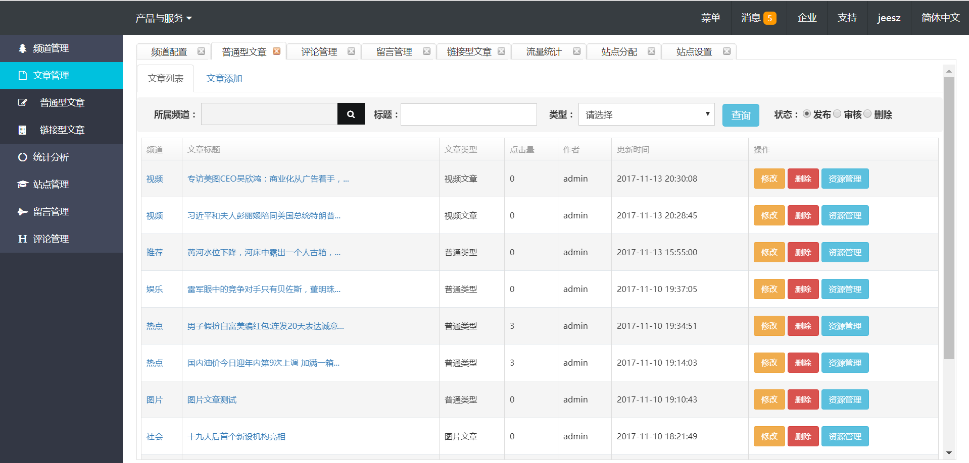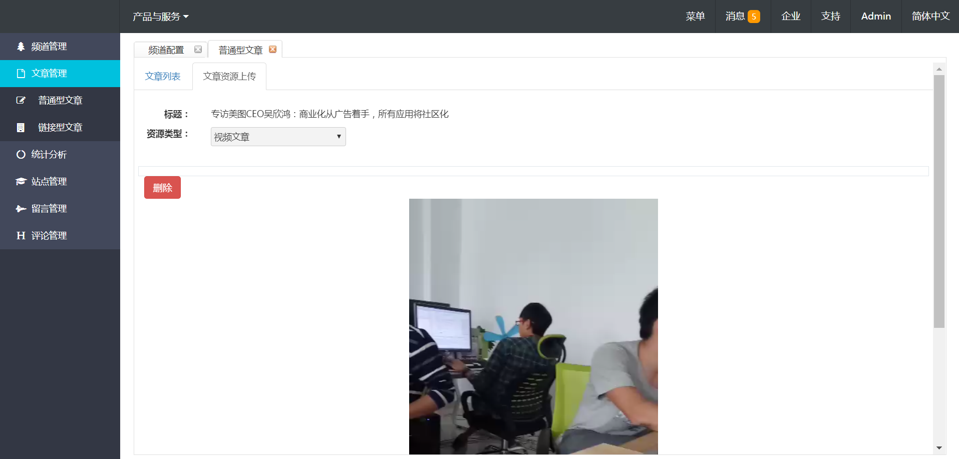 文章分为普通类型、视频类型、图文类型