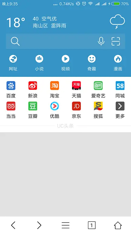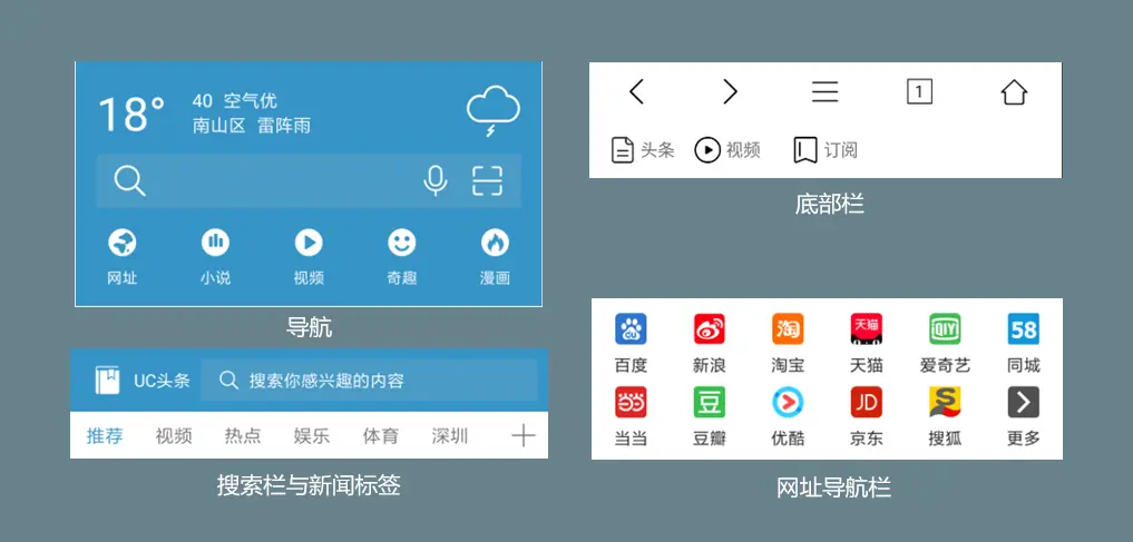 个人认为UC浏览器的主界面交互逻辑还是挺好的,界面过度流畅,动画具有引导性,美观大方。我们现在尝试实现它,先来一张美图: