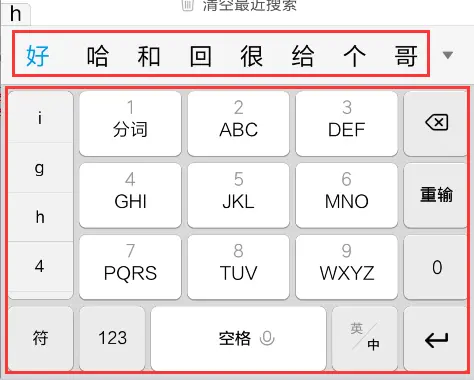 输入法的布局分为两部分,上面为 候选框,下面为 键盘区域.