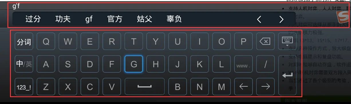 - http://git.oschina.net/kumei/OpenInputMethod 一个英文输入法demo,高仿TV端搜狗输入法界面.