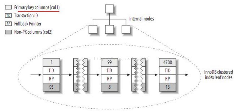 如果是聚簇的方式来存储,那么它的一级索引是下面的样子: