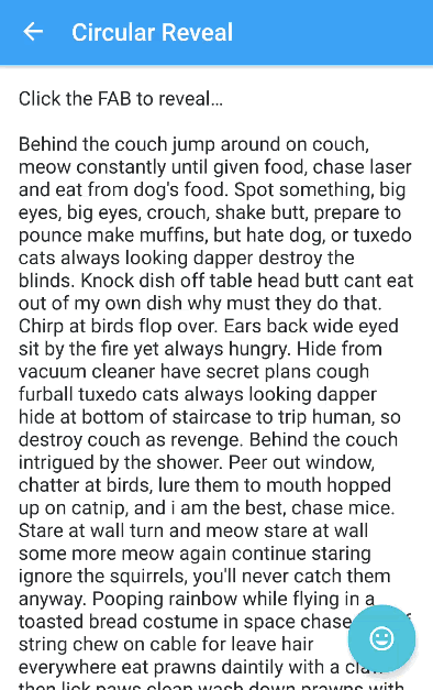Material-Animations也是一个老牌且全面的动画库,你可以从中看到各式各样的动画交互效果,包括Activity/Fragment转场动画、共享元素、以及Circular Reveal(揭露动画)等。