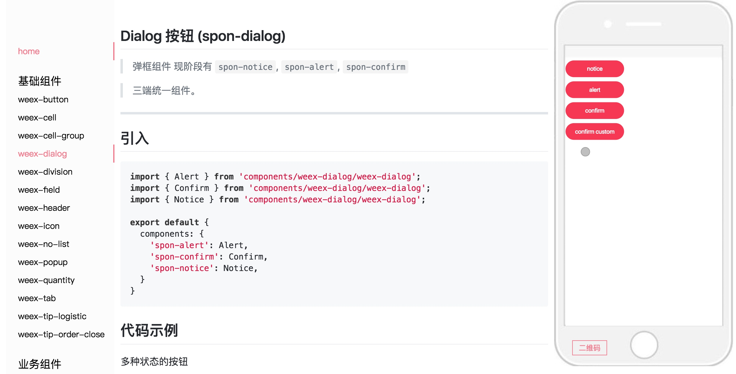 开发同学此时修改 packages 目录中的 weex-dialog 的组件内容,会实时看到修改内容,进行调试。