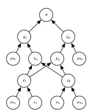 一般来说,神经网络的训练会采用随机梯度下降法。该方法每次训练会选取一个batch的数据,通过BP算法计算梯度,并更新参数。为了训练不同结构的神经网络,我们需要屏蔽其中的一些神经元。实际上,神经网络的特殊结构使得我们屏蔽相关的神经元非常简单——只需要在该神经元的输出上乘以0即可。如下图,我们在输入层和隐含层的每个神经元上面乘以一个系数μ,μ只能为0或1。那么,μ=1时,该神经元可以正常输出,而μ=0时,该神经元就会被屏蔽。