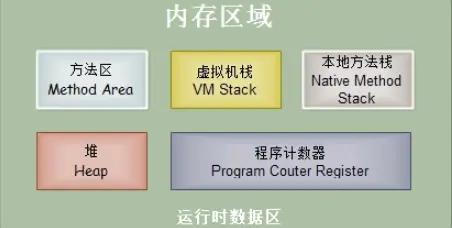 对于这段代码会涉及Vm Stack、Java Heap、Meta-Area三个最重要的内存区域。