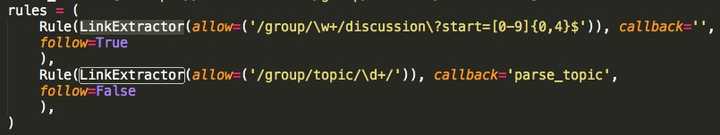 2. 爬虫开始的链接指的是 start_urls,指的是爬虫从哪个链接开始爬取,比如,www.douban.com/group/haixi… , 从豆瓣害羞组的第一页爬取。