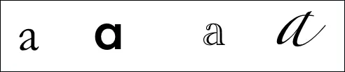 简单说字体就是映射到字符的字形集合,以下就是字符 a (ascii 码为 97)的不同字形: