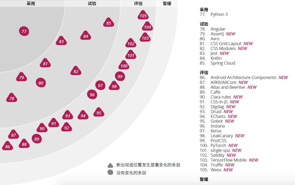 技术雷达是由 ThoughtWorks 技术战略委员会(TAB)经由多番正式讨论给出的最新技术趋势报告,它以独特的雷达形式对各类最新技术的成熟度进行评估并给出建议,为从程序员到CIO/CTO的利益相关者提供参考。