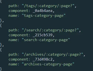 官方说这种情况用的较少,但是我发现用的挺多的,比如说不同分类又有不同分页,这样分类和分页都要是动态路由,如图所示: