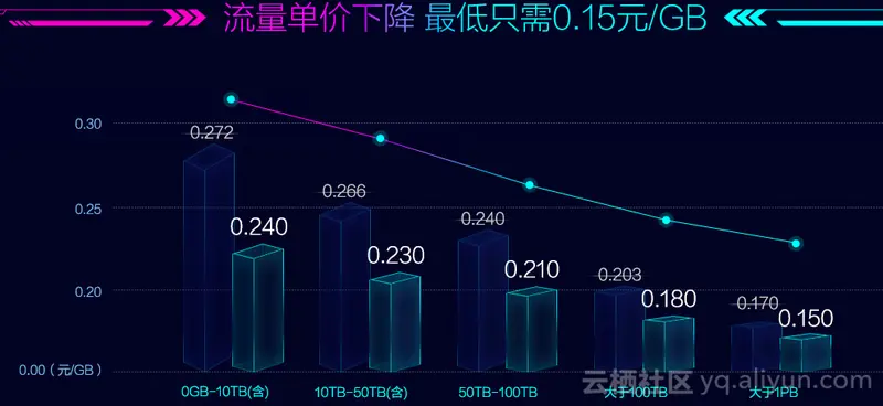 在刚刚圆满落幕的云栖大会·广东分会上,阿里云发布了很多重磅信息,其中不乏很多核心产品折扣幅度调整的信息。令人惊喜的是,阿里云CDN价格再次下调,降幅高达25%。降价完成后,带宽单价最低只需0.54元/Mbps/天,流量单价最低只需0.15元/GB,再创国内最低价。