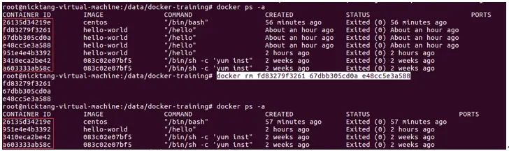 【删】删除容器,docker rm 容器ID,删除多个容器就可以多个容器ID之间用空格隔开即可。