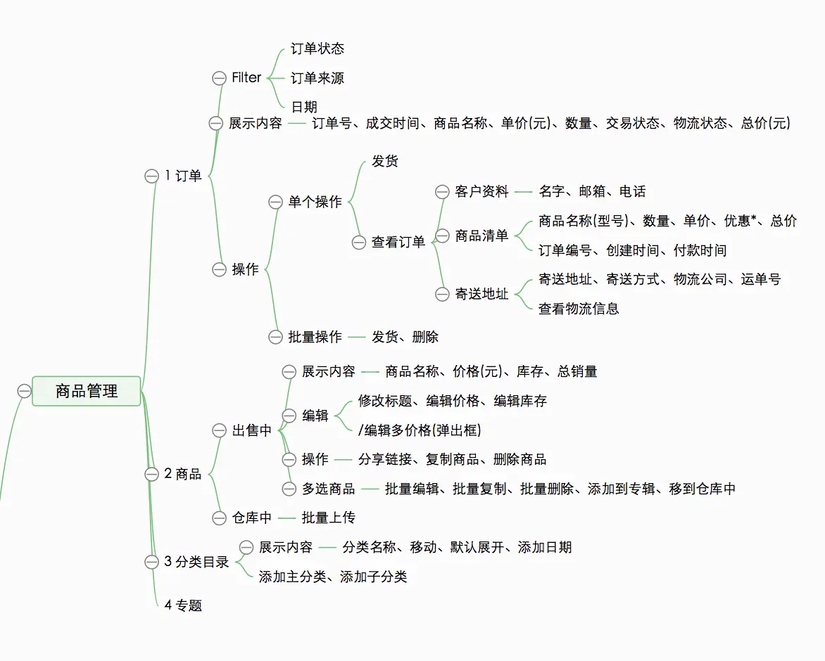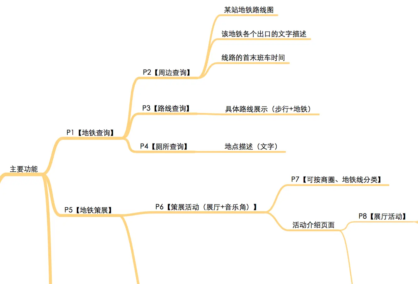 结合产品需求和框架草图,可以用 Mindnode 画出流程图,把文字需求更清晰、有条理地展示出来。如下: