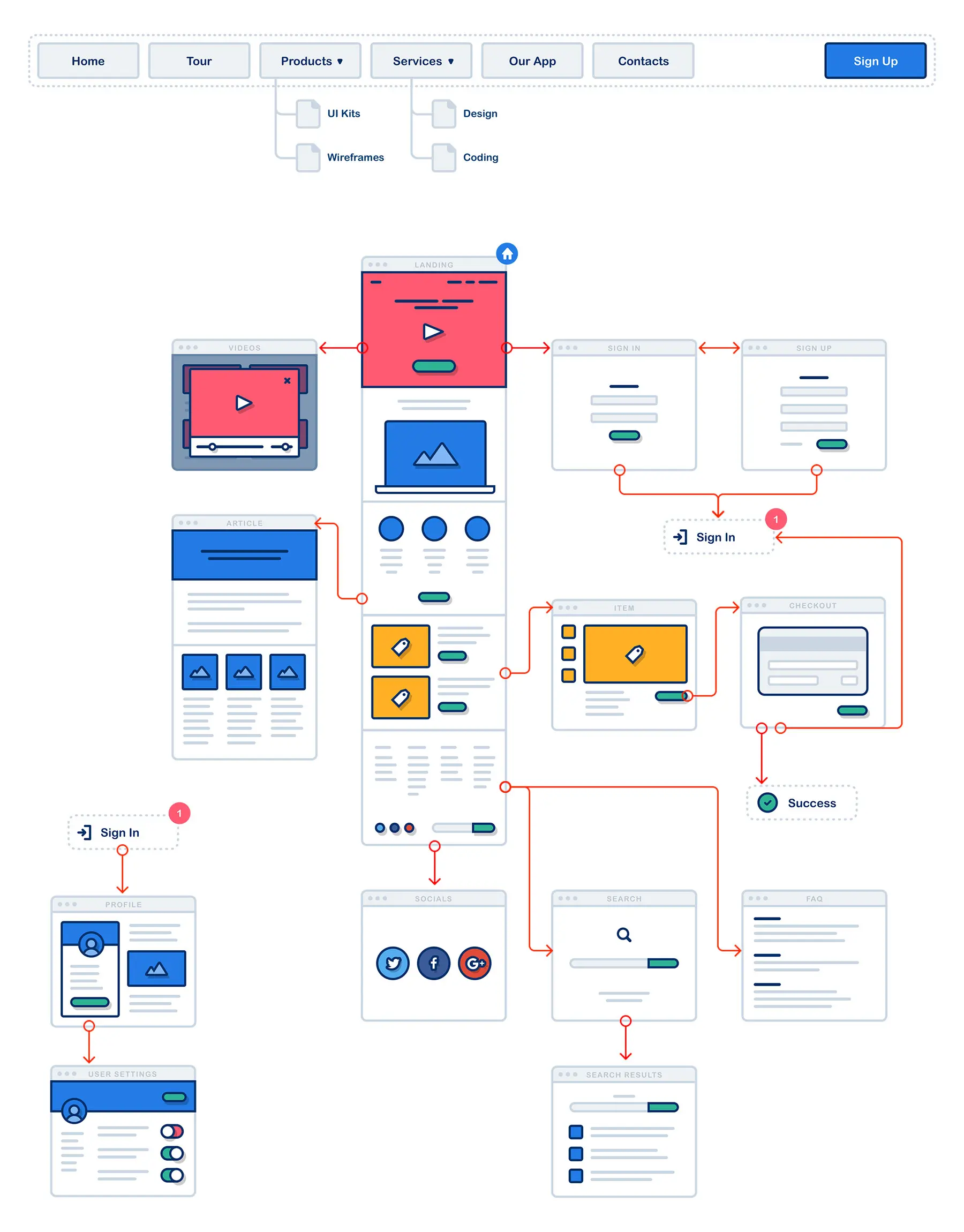 内含网页流程图模板、移动线框包、迷你暗色流程线框图、iPhone框架模板、Apple Watch交互流程包。
