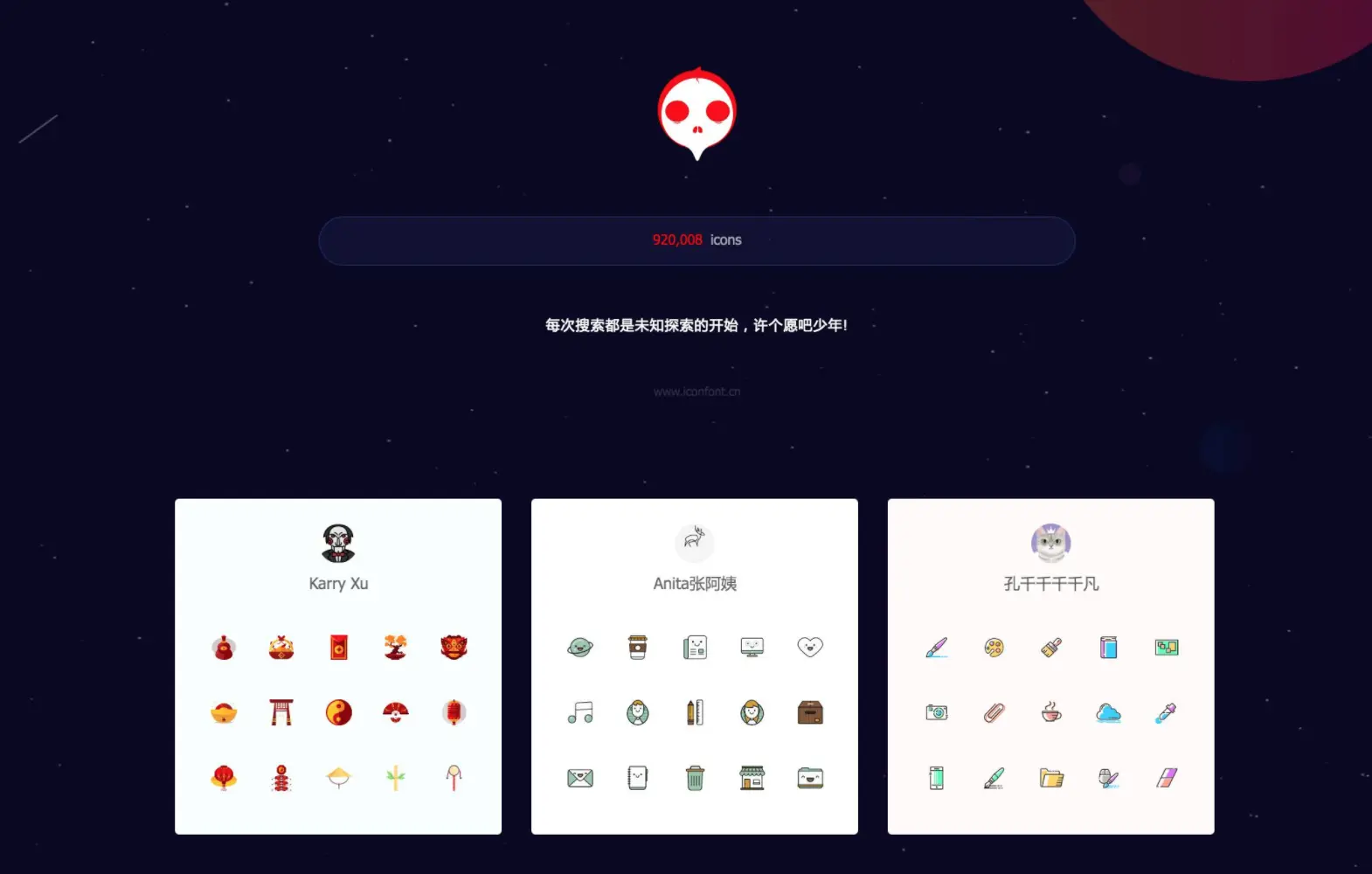 要找 Icons 素材,可以上 Iconfont,由阿里妈妈 MUX 打造,它有许多成套的彩色免费 Icon Set。也可以用作 Icons 转 Font 供程序员使用。