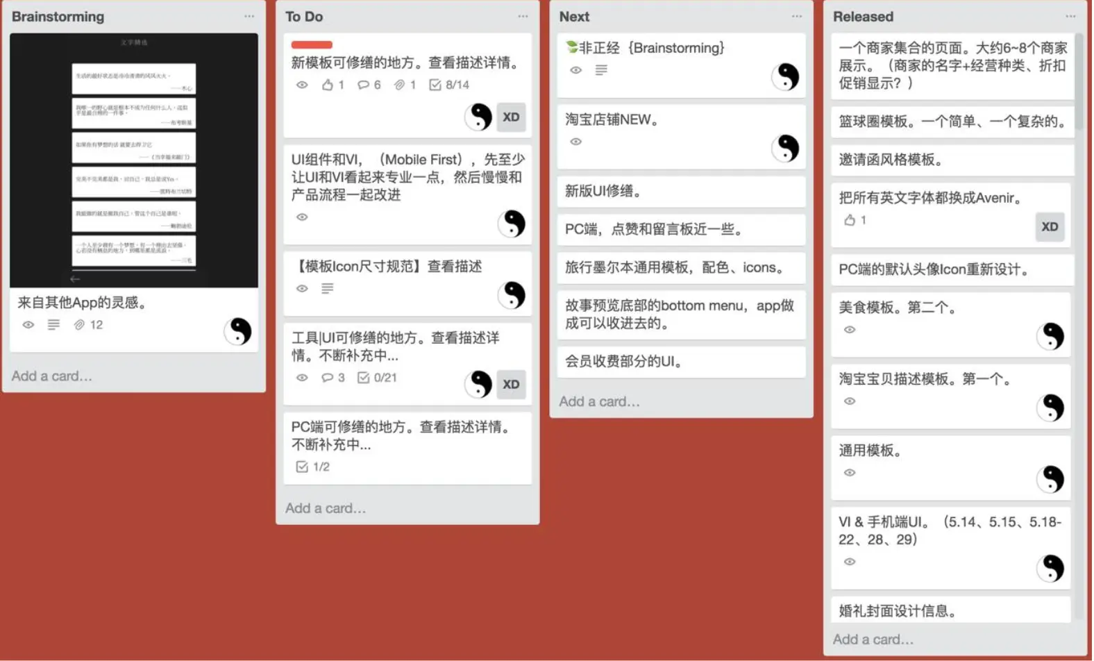 看板样式擅长处理流程化任务,适用于产品研发设计等。如下: