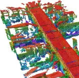2013年,TUM机器视觉组的Engel 等人提出了一套同样也是基于直接法的视觉里程计(visual odometry, VO)系统,该系统2014年扩展为视觉SLAM 系统LSD-SLAM[13],并开源了代码。与DTAM相比,LSD-SLAM 仅恢复半稠密深度图(如下图),且每个像素深度独立计算, 因此能达到很高的计算效率。LSD-SLAM 采用关键帧表达场景,每个关键帧K包含图像 Ik、逆深度图Dk和逆深度的方差Vk。系统假设每个像素x的逆深度值服从高斯分布N(Dk (x),Vk (x))。LSD-SLAM 的前台线程采用直接法计算当前帧t与关键帧k之间相对运动,后台线程对关键帧中每个半稠密抽取的像素点x(梯度显著区域), 在It中沿极线搜索Ik (x)的对应点, 得到新的逆深度观测值及其方差,然后采用EKF更新Dk和Vk 。LSD-SLAM采用位姿图优化来闭合回环和处理大尺度场景。2015年,Engel等人对LSD-SLAM进行了功能拓展,使其能够支持双目相机[14]和全景相机[15]。
