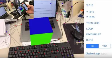 2017年,香港科技大学的沈绍劼老师课题组提出了融合IMU和视觉信息的VINS系统[27],同时开源手机和Linux两个版本的代码,这是首个直接开源手机平台代码的视觉IMU融合SLAM系统。这个系统可以运行在iOS设备上,为手机端的增强现实应用提供精确的定位功能,同时该系统也在应用在了无人机控制上,并取得了较好的效果。VINS-Mobile使用滑动窗口优化方法,采用四元数姿态的方式完成视觉和IMU融合,并带有基于BoW的闭环检测模块,累计误差通过全局位姿图得到实时校正。
